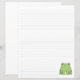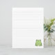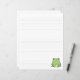 Papel rayado de un lado con una pequeña rana verde en la esquina inferior derecha.