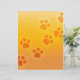 Esta tirita es genial para los amantes de las mascotas de todas partes. Presenta un fondo oscuro brillante de color amarillo a naranja y huellas de pata naranja caminando por la pieza. Trabaja para amantes de mascotas, comestibles, caminantes de perros o veterinarios.