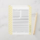 Parte de nuestra colección "Lemon Pie", cada uno de los artículos de esta serie presenta cuadros amarillos y blancos con acentos verdes. Algunos artículos presentan un patrón de rayas verdes con acentos de cuadros y algunos de los artículos presentan un delicioso trozo de pastel de limón como acento. Casi todos los artículos están diseñados para que puedas personalizarlos según tus necesidades únicas.