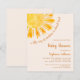 Esta invitación a una ducha de bebé barata incluye el texto "¡Un pequeño rayo de sol está casi aquí!" con un sol de color amarillo acuático sobre un suave fondo crema. Perfecto para una ducha para bebés sin diferencias de género. Personalizable fácil. Utilice la Herramienta de diseño para cambiar el tamaño, estilo o color del texto. Porque creamos nuestra obra de arte no encontrarás esta imagen exacta de otros diseñadores. Acuarela original © Michele Davies.