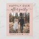 Elegancia rosa rubí o invitación boda privada y invitación a fiesta de recepción o celebración. El frontal muestra su foto, "Feliz eterno después del Fiesta" en tipografía moderna y un guión elegante con toques y nombres y fecha boda. Al contrario, personaliza tu invitación matrimonial y la invitación a la recepción con más detalle, crea fácilmente el código QR de tu sitio web boda para que los invitados escaneen para ver tus fotos de bodas, todos los detalles y el RSVP en línea, y agrega tus nombres en un guión parecido a una firma.