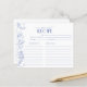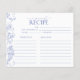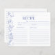 Diseñado para adaptarse a nuestra invitación francesa a la ducha con flores azul y blanca victoriana, este moderno diseño de tarjeta de recetario presenta tipografía con escritura a mano, florales victorianos azules de flores de jardín, abejas y mariposas, junto con caligrafía con letras modernas a mano. ¡Todas las recetas necesarias para compartir recetas favoritas con la futura novia! Todos los campos de texto, excepto la tipografía de diseño patentada, se pueden editar según sea necesario. NOTA: ESTA TARJETA DE RECETA NO SE ENCUENTRA EN EL ENTORNO DE INVITACIÓN DE SQUARE, POR LO QUE TENDRÁ QUE PEDIR EL DISEÑO VERTICAL DE 5X7" DE LA INVITACIÓN DE COINCIDENCIA PARA IR CON ESTE CONJUNTO DE VISTA DE TARJETAS DE RECEPTO aquí: https://www.zazzle.com/collections/french_blue_white_victorian_floral_bridal_shower-119265327422133417 Contacto de diseñador para productos coincidentes. Copyright Surridge Design Co. para Elegant Invitaciones, todos los derechos reservados.