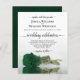 Esta invitación a la boda es elegante, elegante y hermosa, a la vez que es asequible y amigable. Presenta un sencillo diseño romántico con un único rosa de color verde esmeralda de tallo largo que se refleja en una piscina de agua con olas y olas. La tipografía incluye caligrafía de escritura elegante con toques, colas y florecientes. Una forma maravillosa de invitar a tus amigos y familiares a compartir tu alegría en tu día especial sin romper el banco.