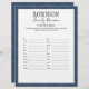 Disfruta jugando esta diversión, termina su juego de frases en tu próxima reunión familiar. Seleccione a alguien para completar las frases. Entonces deja que tus invitados piensen cómo esa persona les respondió. ¡La persona con las respuestas más correctas gana! Cada lista de palabras puede ser creada por usted. Fondo damasco azul.