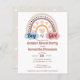 Invitación de presupuesto de revelación de género de niño o niña arcoíris boho.