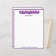 Añada un estilo único y personal al diseño de papel de diseño personalizado. Romántica fila de Bonito de Purple Hearts Personalizada de la escritura de papel. Personaliza con el nombre, las iniciales, el mensaje, la cita o cualquier cosa que desees. Use la segunda línea para la dirección, el sitio web o cualquier otra información - puede ser eliminada si lo desea. La hoja posterior coincide con el tema de color.