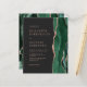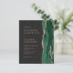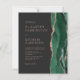 El borde derecho de esta elegante y moderna invitación a las bodas incluye una pasarela de color verde esmeralda bordeada por un falso purpurina de oro rosa. El texto del personalizable combina suero rosa rosado polvoriento, copperplate y tipografías cursivas sobre un fondo negro de pizarra. El reverso presenta un diseño de ágata color verde esmeralda y oro rosa.