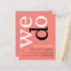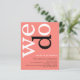 Una alternativa de valor por dinero BUDGET en un tamaño menor de 4,5 x 5,6" de peso semibrillante de 110 libras, que es de espesor similar al de una postal (sin embargo, no es adecuado para usar como postal). POR FAVOR, TENGA EN CUENTA QUE HAY UNA invitación por hoja. PRESUPUESTO Rosa de coral sencillo texto Invitación a matrimonio de código QR. Añade tu código QR al sitio web de tu boda en la parte posterior para que tus invitados puedan ver todos los detalles en línea sin necesidad de gabinetes separados. Un diseño tipográfico moderno con We Do en tipografía grande rotada y al lado de arriba en blanco y negro sobre un fondo de rosa de coral. Los colores del fondo y del texto se pueden cambiar si se desea a través del Personalizar.