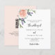 Un fondo blanco moda. Decorada con oro rosa y floral rosa, flor rosa y lavanda. Personalice y agregue sus nombres y detalles del boda. Letras de color negro y dorado. Parte posterior: color de fondo de color dorado rosa. Agregue la URL de su sitio web boda al código QR para que sus invitados busquen más información y RSVP. 1 hoja = 1 borde impreso de invitación.