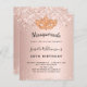 Para una elegante Mascarada, por un cumpleaños número 50 (o cualquier edad). Un fondo de aspecto metálico de color dorado rosa. Decorada con un polvo falso purpurina y una máscara dorada de máscaras. Personalice y agregue un nombre, edad y detalles del fiesta. El nombre se escribe con un guión de estilo con letras a mano