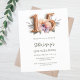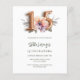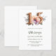 Una invitación moderna, elegante y glamurosa para una quinceañera. Fondo blanco, decorado con melocotón y flor morada acuática. El nombre está escrito con un guión moderno de estilo con letras a mano de color verde. Personalice y agregue los detalles de su fiesta. El número 15 se escribe con un tipo de letra, guión. 1 hoja = 1 borde impreso de invitación al borde.