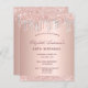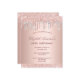 Una invitación moderna, elegante y glamurosa para una fiesta de cumpleaños número 50 (o cualquier edad) de una mujer. Un fondo de gradiente dorado subió con oro subió, goteo de purpurina rubio y plateado, pinturas de goteo. Personalice y agregue un nombre y detalles del grupo. El nombre está escrito con un guión moderno de estilo con letras de color rosa oscuro y dorado.