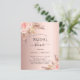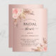 Para una moderna ducha nupcial al estilo boho. Un rosa de oro falso de aspecto metálico. Decorada con rosa de oro y flores rosadas, rosas y pampas. Personalice y agregue un nombre y detalles del fiesta.