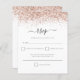 Una alternativa de valor por dinero BUDGET en un tamaño menor de 4,5 x 5,6" de peso semibrillante de 110 libras, que es de espesor similar al de una postal (sin embargo, no es adecuado para usar como postal). POR FAVOR, TENGA EN CUENTA QUE HAY UNA invitación por hoja. Guión Rosa de presupuesto Purpurina de oro Boda RSVP.. Borde falso purpurina en la parte superior de ambos lados con un guión elegante con barras para el encabezado.