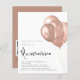 Invitación Quinceañera del código QR de los globos de oro Rosa de presupuesto. Un precio económico menor 4,5" x 5,6" alternativa. Disponible en un ALMACENAMIENTO DE TARJETAS SEMI GLOSS 110 lb que es la opción predeterminada (recomendado para invitaciones), O UN ACCESO DE PAPEL DE LADRILLO DE 80 lb SATIN (ideal para los gabinetes). Esta versión de esta invitación tiene en mente a los fiestas que tienen lugar en un hotel o restaurante (o cualquier lugar con un sitio web), reemplazar el código QR de la parte posterior por un código QR en su sitio web. Puede crear códigos QR en línea de forma gratuita. O simplemente buscar "creador de código QR" y muchas opciones aparecen para crear gratis. También puede borrar el código QR y el texto de la parte posterior si no es necesario a través del personalizar. Elegante estilo para sus invitaciones a fiestas de 15 años con globos de oro rosa a la derecha, con un toque de purpurina falso y Quinceañera en un set de escritura a mano. Personaliza fácilmente el resto del texto a tus propios detalles. Al otro lado se encuentra un fondo de oro rosa de coordinación que puede cambiarse a otro color si lo desea a través del personalizar, al igual que el color del texto.