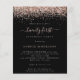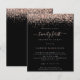 Una alternativa de valor por dinero BUDGET en un tamaño menor de 4,5 x 5,6" de peso semibrillante de 110 libras, que es de espesor similar al de una postal (sin embargo, no es adecuado para usar como postal). POR FAVOR, TENGA EN CUENTA QUE HAY UNA invitación por hoja. Rosa de presupuesto Purpurina Glam Girly Black 21st Birthday Fiesta. Un borde de purpurina de oro rosa está en la parte superior de cada lado con un fondo negro clásico, y Twenty first está en un guión estilo escritura a mano con guiones. Personaliza fácilmente el texto a tus propios detalles.