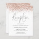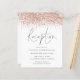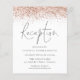 Una alternativa de valor por dinero BUDGET en un tamaño menor de 4,5 x 5,6" de peso semibrillante de 110 libras, que es de espesor similar al de una postal (sin embargo, no es adecuado para usar como postal). POR FAVOR, TENGA EN CUENTA QUE HAY UNA por hoja. Alojamiento de Recepción de Boda Rosa de Oro. Un guión moderno para el encabezado y el resto del texto que se puede personalizar fácilmente, con bordes purpurinas falsos en la parte superior de cada lado en oro rosa.