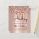 El presupuesto celebra con estilo con esta elegante invitación a los Rosas del Purpurina de oro a los 11 años. Con una caligrafía con letras de moda y un balón con números de Relieve metalizado oro rosa juguetón, este diseño se ve realzado por un brillante borde purpurina y un lujoso fondo de Relieve metalizado metálico rosa. Perfecto para un fiesta de 11 años, captura la diversión y el glamour de una moderna celebración de cumpleaños de un purpurina rosa de oro. Invitaciones de cumpleaños baratas.