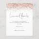 Una alternativa de valor por dinero BUDGET en un tamaño menor de 4,5 x 5,6" de peso semibrillante de 110 libras, que es de espesor similar al de una postal (sin embargo, no es adecuado para usar como postal). POR FAVOR, TENGA EN CUENTA QUE HAY UNA por hoja. Rosa de presupuesto Purpurina de oro Script Amor y Gracias Boda. Un toque de glam con falsos bordes purpurinas en oro rosa en ambos lados y un elegante guión estilo escritura a mano para Love and Gracias. Personaliza fácilmente el resto del texto con tu mensaje y nombres.