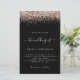 Rosa Purpurina de oro Boda Invitación Negra. Una alternativa mayor de 5,5" x 8,5" a un precio presupuestado. Disponible en un ALMACENAMIENTO DE TARJETAS SEMI-GLOSS de 110 lb o en un ALMACENAMIENTO DE TARJETAS GRABADO EN RELIEVE LINEN de 115 libras (ambos recomendados para invitaciones), también hay algunas opciones DE PAPEL DELICADO (ideales para los gabinetes). TENGA EN CUENTA QUE LOS ENVELOPES SUMINISTRADOS SON UN POCO MÁS GRANDES QUE EL INVITADO A 6.75" x 9" aprox. A cada lado hay un borde de purpurina de oro rosa, y el Boda de en un guión estilo escritura a mano en rosa polvoriento con un fondo negro. Personaliza fácilmente el texto a tus propios detalles. También puede cambiar el texto y los colores de fondo a través de la opción personalizar adicional si lo desea.