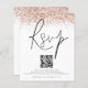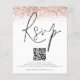 Una alternativa de valor por dinero BUDGET en un tamaño menor de 4,5 x 5,6" de peso semibrillante de 110 libras, que es de espesor similar al de una postal (sin embargo, no es adecuado para usar como postal). POR FAVOR, TENGA EN CUENTA QUE HAY UNA por hoja. Rosa de presupuesto Purpurina de oro QR Boda de script de código en línea RSVP Gabinete. Un borde purpurina falso en la parte superior de ambos lados con un guión conjunto elegante con para el encabezado. Intercambie el código QR a la página de respuesta del sitio web del boda para obtener una opción de respuesta alternativa conveniente para sus invitados. Para crear un código QR, busque en línea "generar un código QR"
