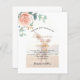 Decorada con rosa de oro y floral rosa, flor rosa y hojas de eucalipto de color verde acuático, brotes, vegetación y brotes de oro falsos. Personaliza y agrega tu foto, nombres y detalles del boda. Sobreposición de fotos en blanco. Atrás: agregue la URL de su sitio web boda al código QR para obtener más detalles y/o RSVP. 1 hoja = 1 borde impreso de invitación a borde.