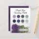 Estas tarjetas de paleta de colores están diseñadas para complementar nuestra suite Amethyst Purple Rosa boda. La tarjeta incluye muestras de color de la imagen, así como tonalidades de marina, verde sabio y gris que complementarán la obra de arte. Perfecto para ayudar a las damas de honor a elegir vestidos de colores adecuados.