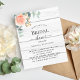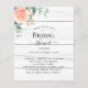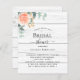 Madera rústica blanca como fondo. Decorada con rosa de oro y floral rosa, flor rosa y hojas de eucalipto de color verde acuático, brotes, vegetación y una falsa primavera dorada. Personalice y agregue el nombre de la novia para ser y los detalles del fiesta. 1 hoja = 1 borde impreso de invitación al borde.