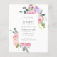 Invitaciones veraniegas a la ducha de novias con rosas de color rosa, vegetación de moda y tipografía moderna. Como parte de la selección del presupuesto en Zazzle, estas invitaciones vienen en tamaños limitados y reservas de papel. Si necesita un tamaño o material de papel diferente, este diseño se puede transferir a un formato estándar 5x7 utilizando la herramienta de transferencia de diseño para más opciones.