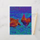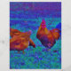 Lámina Rostro y gallinas arcoiris, azul eléctrico