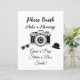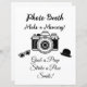 Señal de la cabina de fotos de cámara en blanco y negro. ¡Recuerden, tomen un apoyo y hagan una pose! Signo de boda.