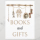 Añade un toque rústico a tu ducha de bebé con este hermoso cartel de "Libros y Regalos". Diseñado con ilustraciones acuáticos de aparejos de pesca, overoles para bebés y botas, este letrero es perfecto para una pequeña ducha con temática de pescador. Use este signo para guiar a sus invitados a la zona designada para dejar libros y regalos, mientras realza el estilo cohesivo de su decoración de eventos.
