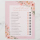 Añade risas y diversión a tu ducha de novia con nuestro juego de Rubor Floral "He Said, She Said". Con un suave diseño floral, este juego interactivo permite a los huéspedes adivinar quién dijo qué: novia o novio? Es un perfecto rompehielos que reúne a todos para una celebración memorable. Características: Elegante diseño floral Rubor: flores suaves y románticas que complementan cualquier tema de ducha de novia. Diversión y compromiso: los invitados adivinan quién dijo cada declaración - ¡la novia o el novio! Fácil de Jugar: Simplemente marca tus respuestas y disfruta de las divertidas discusiones que siguen. Disponible en varios formatos: Elija una versión impresa de alta calidad o una descarga digital instantánea para una impresión rápida y sencilla. Haga que su ducha de novia sea inolvidable con este entretenido y bellamente diseñado juego.