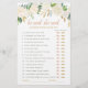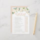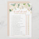 La hoja de juego de He Said She Said para la ducha de novias boda incluye un texto personalizado que puede ser personalizado para la novia y el novio, simbolizado por los iconos de los labios y bigote, enmarcado por un elegante diseño de acuarela floral con rosas pintados, flores de ranÚculo y hojas en tonos neutros de primavera y verano de blanco, crema, rosa rubor, oro, oro rosa y verde. La parte posterior de la tarjeta es de color negro suave con el patrón abstracto de puntos pinchados. Por favor visite nuestra tienda para el diseño de la invitación a la ducha de novia y otros artículos para celebrar el evento especial.