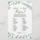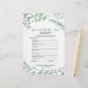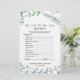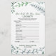 Esta corona rústica "cuán bien conoces a la novia" es perfecta para una ducha de novias al aire libre. La parte delantera de la tarjeta de juego incluye "qué tan bien conoces a la novia", y la parte trasera de la tarjeta muestra "qué hay en tu bolso". El diseño presenta un marco hermoso y caprichoso de hojas acuáticas, plantas y vegetación. Personalice la parte delantera de la tarjeta con el nombre de la novia y la fecha de la ducha.