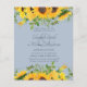 Azul turbio con girasoles - Felicidades por tu compromiso, esperamos que tengas un día maravilloso y una vida futura llena de felicidad y alegría. Este moderno y elegante artículo de papelería de boda forma parte de una colección más grande, diseñada por LeahG en nombre de la Red de Bodas de bajo presupuesto®. Por favor, vea la colección adjunta y 'productos adicionales' para ver la suite boda completa. Las colecciones incluyen a menudo invitaciones a duchas de novias, invitaciones a cenas de ensayo, invitaciones a almuerzos para novias, invitaciones virtuales y guiadas por bodas junto con guardar la fecha, cambiar la fecha, rsvp, etiquetas de favores, pegatinas y mucho más. Algunas colecciones también incluyen la señalización boda que puede personalizar para su evento boda. Ya sea que tenga un jardín al aire libre, un bosque, una montaña, una boda en la playa o un boda cubierto, un granero, una iglesia, un hotel o una residencia privada (¡el castillo!), LeahG ofrece un artículo de papelería boda para satisfacer sus necesidades y su presupuesto. Si no puedes encontrarlo fácilmente, envía un mensaje a Leah por chat y ella te ayudará. Para obtener consejos y consejos sobre planificación de bodas de bajo presupuesto, visite weddingdesignchic.com. Aquí podrá acceder a las ideas para planificar su boda de presupuesto, imprimir listas de comprobación gratuitas para bodas y descargar una guía de planificación de bodas imprimible. Tenga en cuenta todos los tipos y tamaños de papel/tarjeta y lo que se incluye y NO antes de realizar su pedido. El rango de presupuesto puede significar que los tipos de papel/tarjeta son iguales o más delgados de lo normal, así que por favor compruebe antes de realizar el pedido. Comuníquese con LeahG para obtener cualquier servicio de atención al cliente relacionado con el diseño y Zazzle para consultas de pedido/envío. ¡Que tengas un gran día y espero verte pronto!