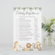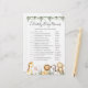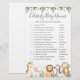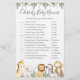 La tarjeta de juego de los nombres de bebé de las celebridades de los animales de safari tiene una acuarela, un ilustracion de animales de safari y una vegetación acuática eucalipto garland y un elegante tipo de letra manuscrita.