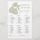 Haz que los clientes se rían con este juego de ducha de novias Perfect Pear "What's in Your Purse", de color verde sabio. Con elegantes ilustraciones de pera y estilo de campo francés, esta divertida actividad hace que los huéspedes comprueben sus bolsas para obtener artículos cotidianos e inesperados para ganar puntos. Este juego, un perfecto rompehielos, es un personalizable con el nombre de la novia y se coordina maravillosamente con toda la colección de ducha de novias Perfect Pear, incluyendo invitaciones, decoración y otros juegos a juego.