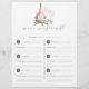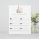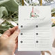 Diseñadas para hacer juego con las invitaciones a la cata de vinos de Cheers to Love, las cartas cuentan con dos copas de vino que se clavan en la parte superior y una botella de rosa con las iniciales de la pareja inscritas en la etiqueta. "Wine Scorecard" aparece en el guión de caligrafía gris. Espacio a continuación para notas de degustación y clasificación de seis vinos.