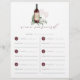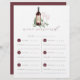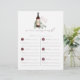 Diseñadas para hacer juego con nuestras invitaciones a la degustación de vinos de la marca Cheers to Love, las cartas cuentan con dos copas de vino tintorescos en la parte superior y una botella de vino tinto de Borgoña con las iniciales de la pareja inscritas en la etiqueta. "Wine Scorecard" aparece en el guión de caligrafía. Espacio a continuación para notas de degustación y clasificación de seis vinos.
