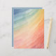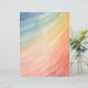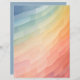 Un gradiente vibrante de colores transita desde el azul fresco en la parte superior, a través de verdes y amarillos, hasta naranjas cálidos y rosados en la parte inferior. La composición se compone de formas geométricas que forman un patrón de líneas curvas, creando un sentido de movimiento y profundidad.