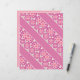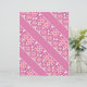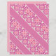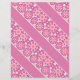 Un patrón con motivos geométricos y florales se representa en tonos rosa y blanco, lo que da al diseño un delicado efecto acuarela. En el centro, se encuentra una tira rosa sólida que podría servir como divisor o resaltado dentro de la disposición con patrones.