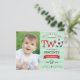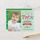 Presentamos la invitación al segundo cumpleaños del presupuesto de Cute Soccer & Ribbon, con una foto personalizada de su bebé. Este moderno diseño cuenta con un divertido fondo de campo de fútbol, con un encantador acento de cinta roja. Perfecto para el cumpleaños de un niño, esta invitación combina la amabilidad y la deportividad para crear un tema interesante. El fondo del campo de fútbol prepara el escenario para una celebración repleta de acción, mientras que la cinta roja simboliza la alegría y la celebración. La letra lúdica añade un toque de capricho. A los padres les encantará esta invitación visualmente atractiva que promete un fiesta memorable y enérgico para su hijo. ¡Que comiencen los juegos! No te pierdas el diseño de este tema de fútbol para empezar los planes de tu pequeña novata para la fiesta de segundo cumpleaños sin tener que meterte en el bolsillo.