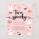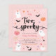 El presupuesto de dos espeluznantes Halloween rosa lindo fantasma 2ª invitación a la fiesta de cumpleaños. Diseño moderno con temática de Halloween para un fiesta espeluznante! Esta invitación de cumpleaños incluye telarañas, fantasmas, calabazas, murciélagos, arañas, hojas, maíz, estrellas y margaritas. ¡Esta invitación es genial para las niñas!