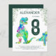 Celebra al niño al que le encantan los dinosaurios que cumplen ocho años con este Roaring colorido T-Rex y el lindo estegosaurio invitando a los fans de Dino a una fiesta de octavo cumpleaños. Personalice esta psicodélica invitación al tiranosaurio y al estegosaurio Jurásico por la jungla añadiendo el nombre del niño o chica de cumpleaños, el número de cumpleaños y los detalles del fiesta y todos se preparan para un divertido cumpleaños de dinosaurio con temática verde. Todas las especies de dinosaurios son bienvenidas. Ilustraciones de Dinosaur de la era del jurásico prehistórico, obra original de la artista Catherine Sweetman
