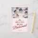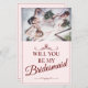 ¿Serás mi dama de honor? Tres damas de honor tendidas con ramos de trajes rosas y suaves delante de una ventana. El texto de fondo se puede ajustar en la plantilla. Foto de Valerie Elash