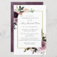Opción de documento de presupuesto. La elegante celebración de una invitación a la vida incluye dos arreglos florales de rosa morado decorando un marco dorado. El nombre de la persona fallecida está escrito en un texto de escritura tradicional. Todo el texto se puede editar fácilmente para crear un recuerdo personal.