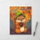 Una imagen adorable para la habitación de un niño. Una ardilla linda sujetando una bellota sentada en el bosque rodeado de hojas de otoño.