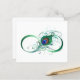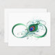El símbolo del infinito con una pluma de pavo real brillante, verde y artística sobre un fondo blanco. Estilo tatuaje.