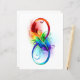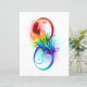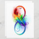 Símbolo de infinito dibujado artísticamente con una hermosa pluma arco iris sobre fondo blanco. Estilo tatuaje.
